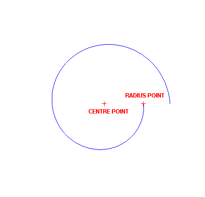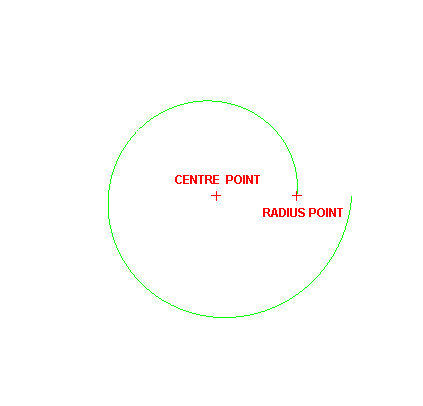 If you chose to use the Centre and Radius or Centre, Radius and Swept angle option, then you will be prompted to indicate the centre point as well as the radius point. The latter is only applicable when you have not enabled the Radius check box while using the Centre and Radius option.