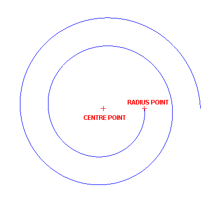 Enter the change in radius for every angular unit in the spiral. A positive number will generate a spiral that moves out from the indicated radius point, while a negative number will generate one that moves in towards the centre point. If you are using the spiral option to design an arc, then set this number to '0.00'.