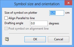 Aligns the symbol at a nominated angle against a specified line. Selection of this option produces the Symbol size and orientation panel.