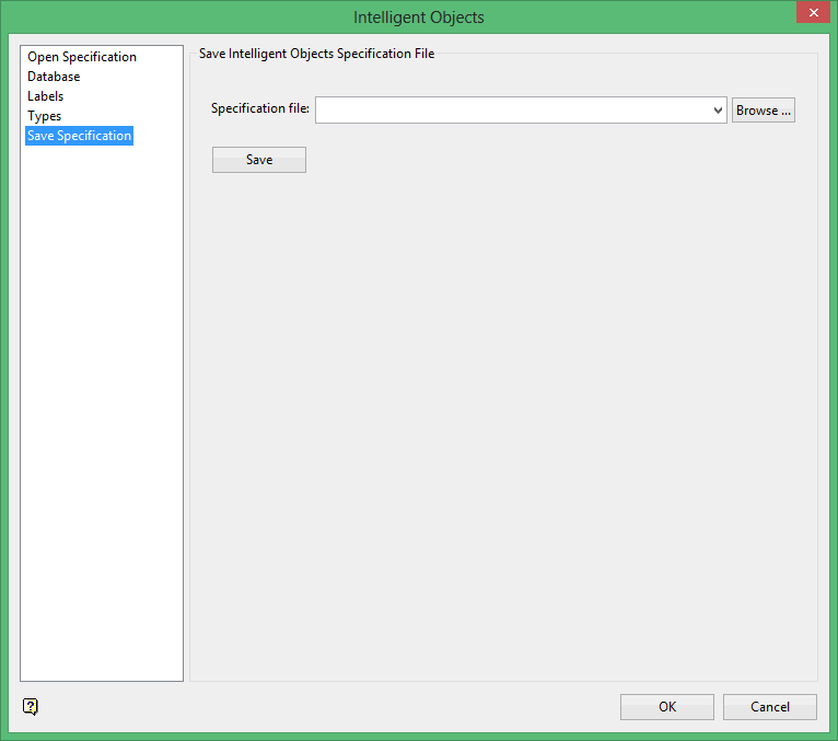 The name of the currently open Intelligent Objects specification file (.ino) displays.