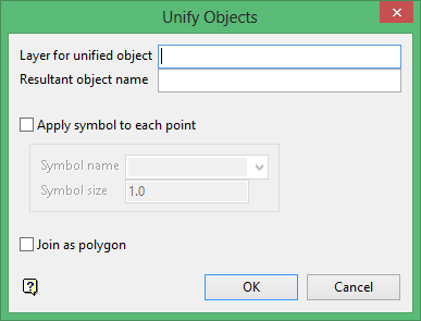 Use the Unify option to unite any number of objects from any layer that is loaded onto the screen to form one object in a nominated layer.