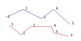 The dark blue object was the first selected point and Point 1 was the starting point. The red object was the second selected point (hence the final object is also red) and Point 1 was the starting point.