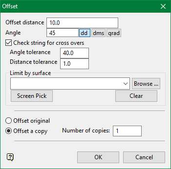 If the line is to be limited by a triangulation surface, select the surface from the drop-down list, browse for it if it is in a folder other than your working directory, or click Screen Pick and select it from the screen. Â Click Clear to cancel your choice.