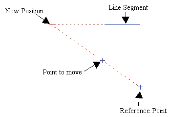 Use this option to move a point to the intersection of a line (defined by the point you want to move and a reference point) and an existing line segment, as shown in the diagram below.