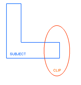 There are four boolean operations: union, intersection, difference and exclusive-or. Using the two polygons illustrated below, subject and clip, the results of each boolean type are shown.