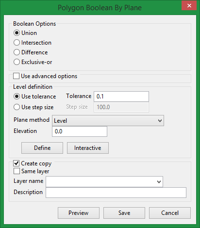 On the Design menu, point to Polygon Edit, then click Boolean By Plane to display the following panel.