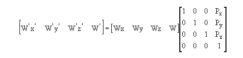 Instead of representing a point in space as an X, Y and Z coordinate, that is (X, Y, Z), points are represented by an infinite number of four dimensional vectors, (W*x, W*y, W*z, W).