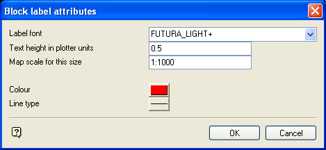 The Label Attributes option to set the font, text size, colour and line type of the block labels on all sections.