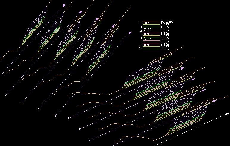 Multi-coloured operation plots can be generated automatically, showing a series of complicated mining procedures on a single, easy-to-read plot.