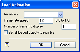 Enter a value, between 0.0 (not changing) to 1.0 (change a full frame at a time), for the frame rate speed. The true speed depends on the speed of your machine and the amount of data in the animation file.