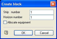 Upon selection, the new block is created on the section (if the block is above the current topography, then the topography is also updated). The label and display attributes of the new block will be taken from the horizon table, for the horizon number that you specified.