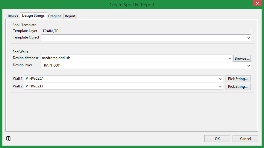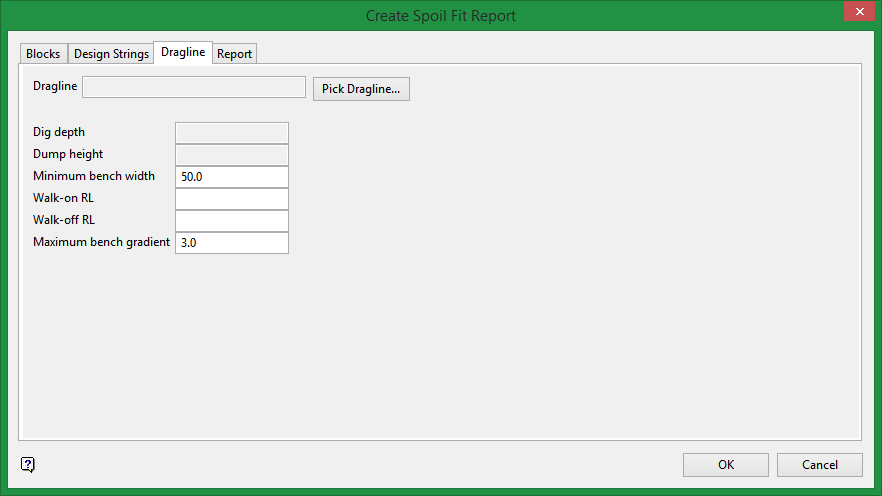 On the Dragline menu, point to Strips, then click Create Spoil Fit Report to display the following interface.