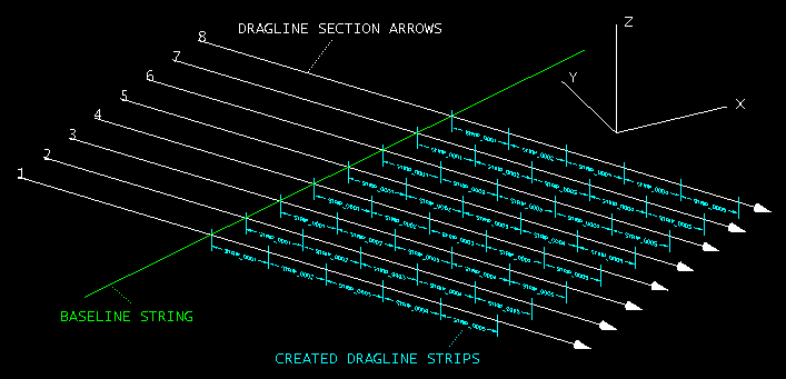 Dragline strips are dimension objects, created in each dragline layer with the name: