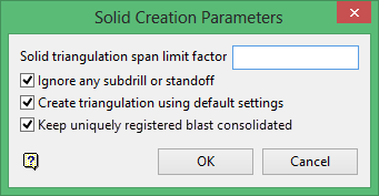 Select the blast that will be used to generate the triangulation solid. Â The Solid Creation Parameters panel displays.