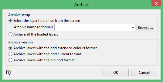 Select this option to pick the layers to archive directly from the screen. You will have the ability to specify the name of the file that will be used to store the archived layer. Leave the field blank if you want the archive file to be named after the nominated layer.