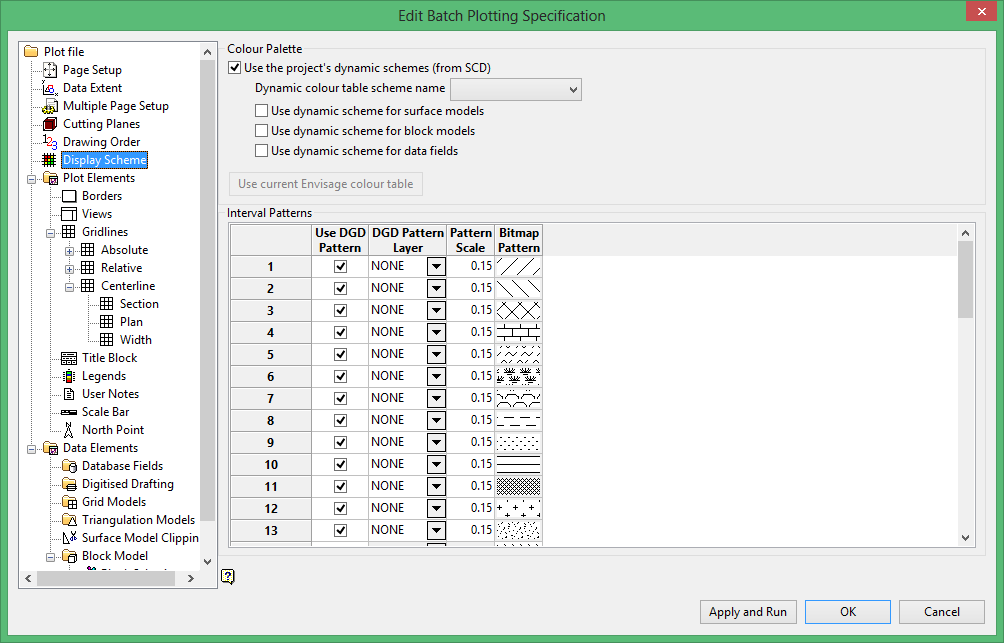 The Display Scheme panel is divided into two sections, Colour Palette and Interval Patterns.