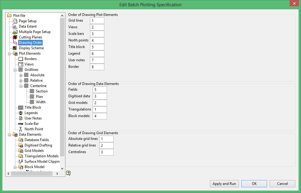 Use this section to determine the order of drawing of Plot Elements and Data Elements. Objects that share the same space, but have a later drawing number will be drawn on top of objects with an earlier number.