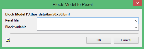 Use the Block To Pexel option to convert a Vulcan block model (.bmf) in to a Pexel file based on the colour legend of a specified variable in the model.