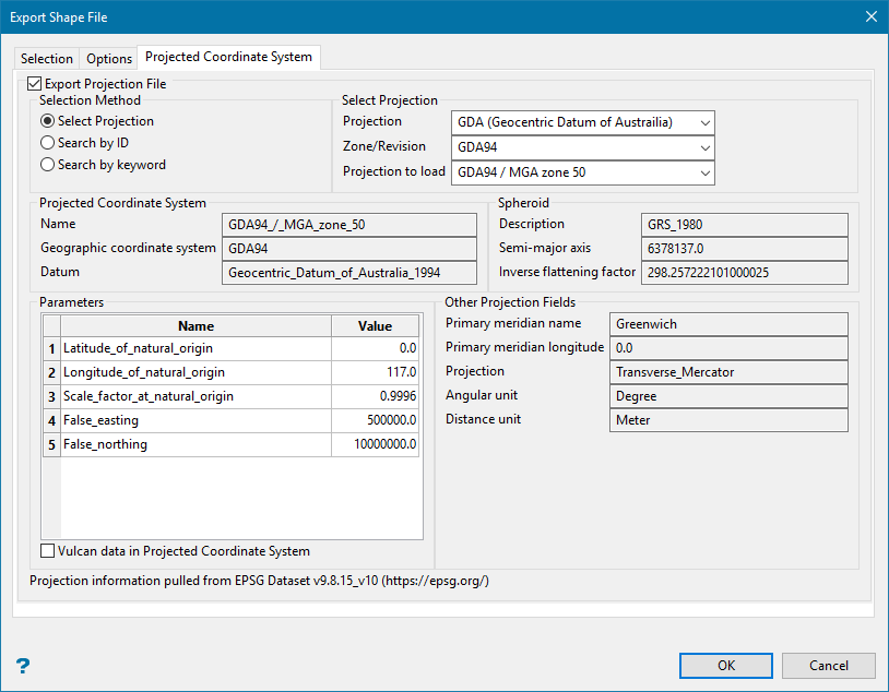 Enable this option to allow custom false easting and false northing values to be used for projection file export when in selected coordinate system.