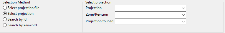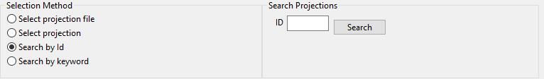 Enter a keyword fro the search projection, or search for it by clicking the Search button. Then select the projection using the drop-down list.