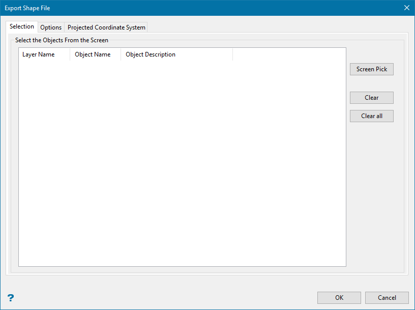 This allows you to set up parameters for a file containing coordinate system information in the format of a (.shp) file.