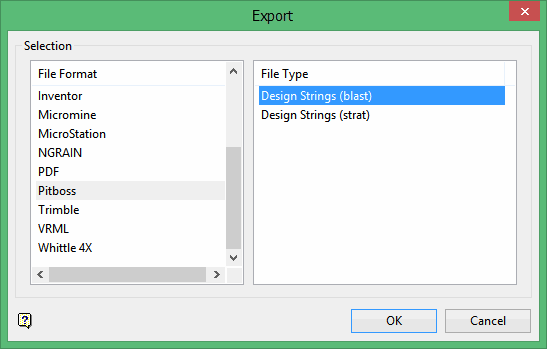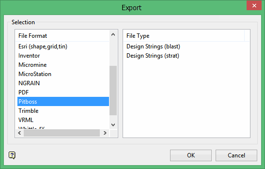 Use the Export Pitboss option to export stratigraphic design string data to Pitboss.