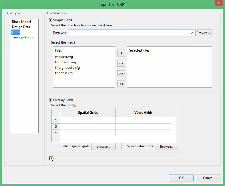 Use the Browse button to navigate to other directories in search of additional grids to export. When all desired files have been selected, click OK to begin the export.