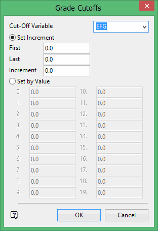 Select this option to define the cut-off variable using specific increments. You will need to define the first and last increments for the grade cutoff, as well as the specific amount that each increment will increase.