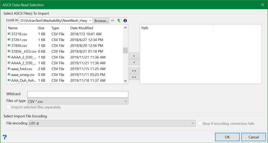 Select the files that you want to import and click -> to move them to the Path column on the right side of the panel, or click >> to select all files. To remove a file, click <-, or click << to remove all files.