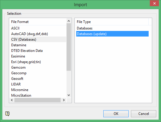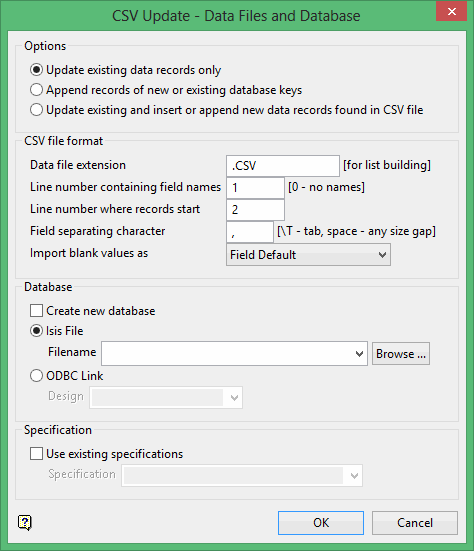 Use this option to update information in an Isis or ODBC database by importing a CSV file with the updated information.