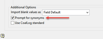Use this panel to assign the header names in CSV files to field names in the drilling database. Synonyms are used to link design fields to external fields when the names of the fields are different as may be the case when compiling data from different sources.