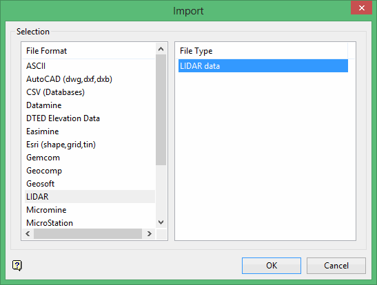 Use this option to import point data into a set of Vulcan layers. The data can be found in LAS files, CSV files, DEM files, or your own selection.