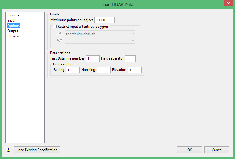 There are five branches on the Load LIDAR Data panel.
