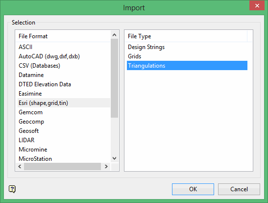 Select Triangulations from the File Type field on the right side of the panel.