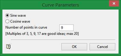 Select whether to draw a sine or cosine wave. You will also need to enter the number of points in the curve. Multiples of 3, 5, 9, and 17 usually produce good results. It is not possible to have more than 20 points in the curve.