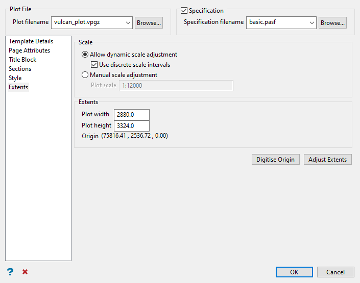 Allow dynamic scale adjustment: Select this option if you want to be able to alter the size of the plot extent when you select the Adjust Extents button.