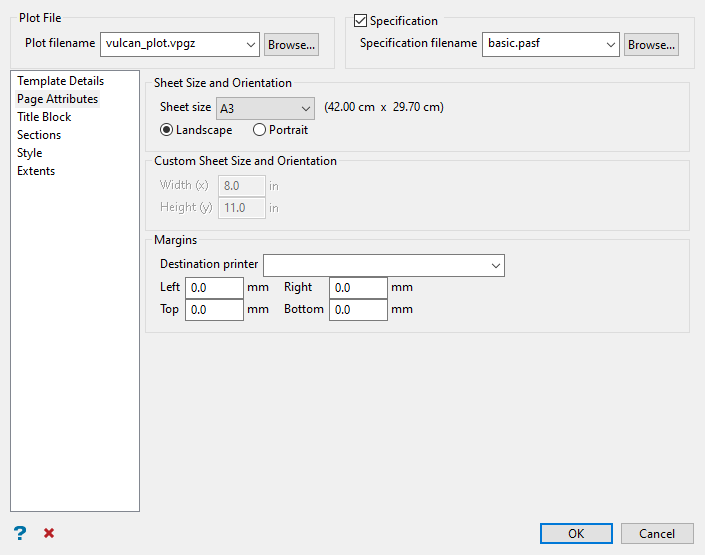 Tip: Â You can specify defaults, such as the page size, orientation, and scale, through Vulcan Preferences > Plot All. The size of point markers on the resulting plot is determined by the settings specified in Vulcan Preferences > Defaults > 2D Text.