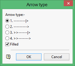 Select the type of arrow you require. The arrows are usually filled (this is the default). Clear the Filled Select this check box if you want the arrow(s) hollow.