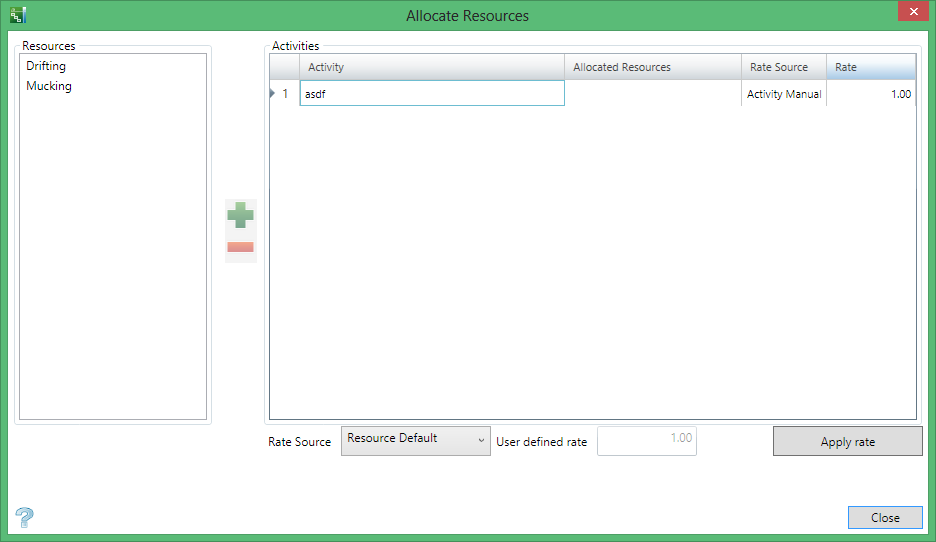 Use the Allocate Resources panel to allocate resources to selected activities.