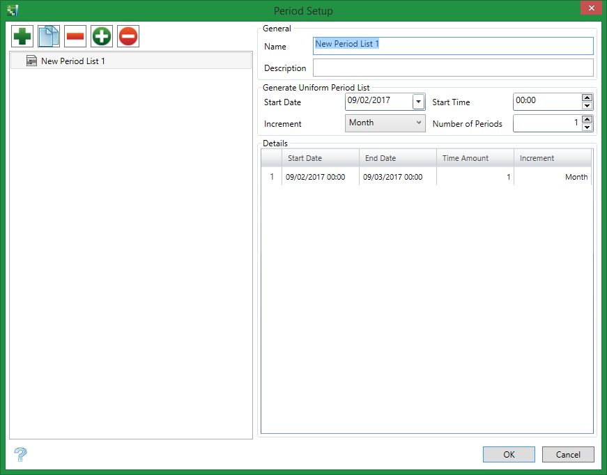 The Details grid populates based on selections made in the Generate Uniform Period List area.