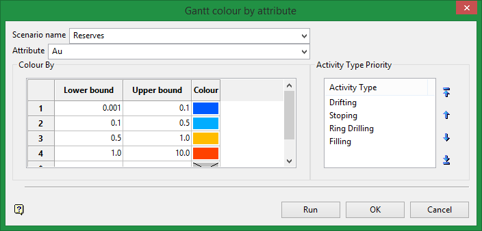 Select the attribute from the drop-down list. The table to set up the colouring parameters will change depending on the attribute selected.