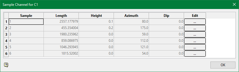 On the Geology menu, point to Channel Sampling, and then click Attributes to display the Channel to Edit panel.
