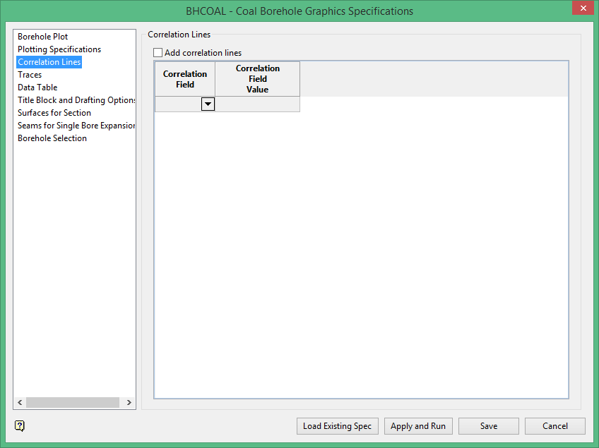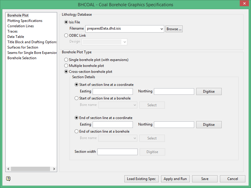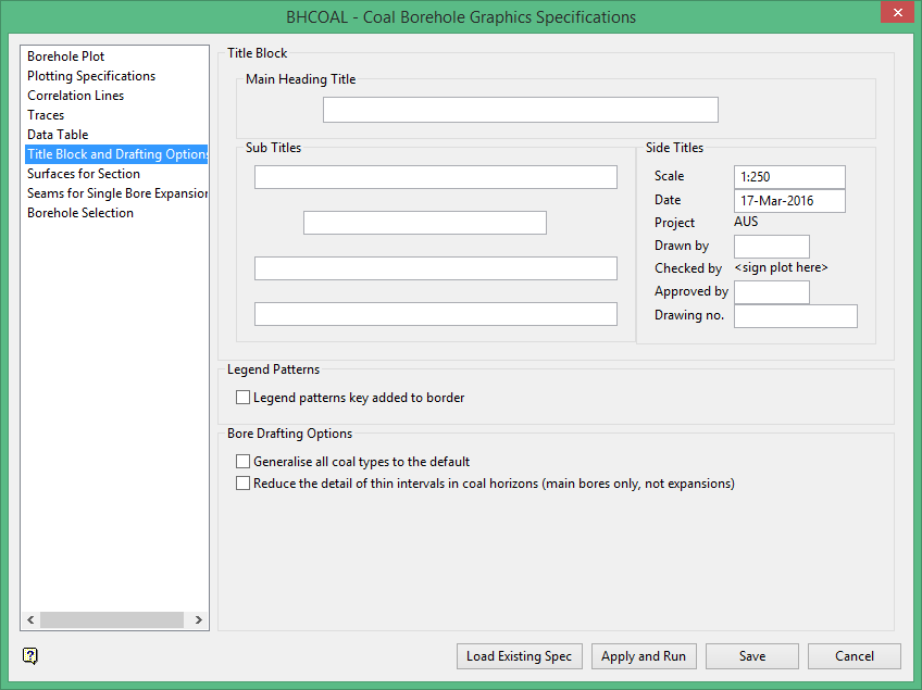 Coal Borehole Graphics Specifications