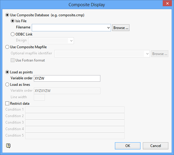 Select this check box to restrict the composites to be displayed. Restrictions apply to the non X/Y/Z values only and the variables must be numeric. This can be done by conditions orrestrictions.