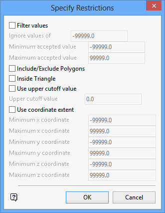Select this check box to exclude X, Y and Z values that are outside a specified coordinate range. You will need to specify the coordinate range.
