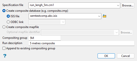Create composite database: Select this option to dump the composites into a database. You will then need to select between Isis file or ODBC link to create the nominated database type. Use the drop-down lists or the Browse... button to select an existing file, or enter a name to create a new file.