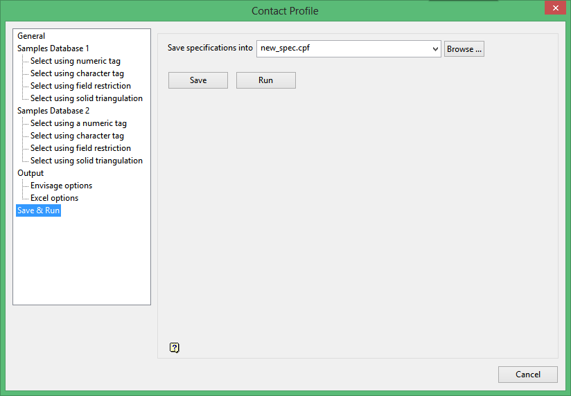 Click Run button to run the specified parameters and save the specification to the specification file.