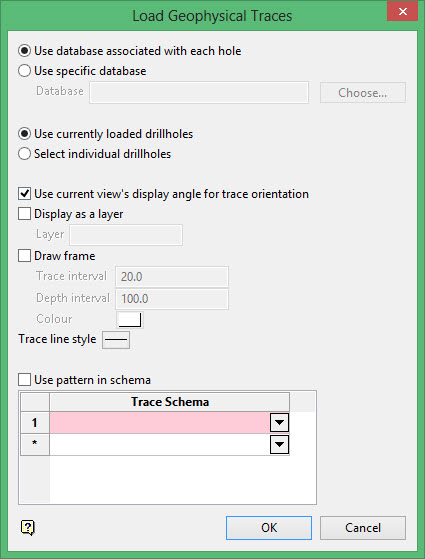 On the Geology menu, point to Downhole Geophysics, and then click View Traces to display the Load Geophysical Traces panel.