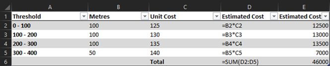 This defines the downhole depths that the associated Unit Cost will be applied to when calculating the estimated drilling costs.