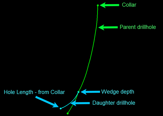 This is the maximum depth of the daughter drillhole, measured from the collar of the parent drillhole, as demonstrated in the image below.